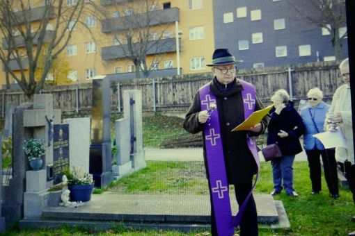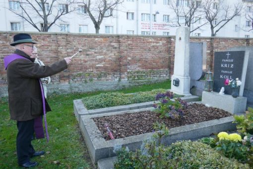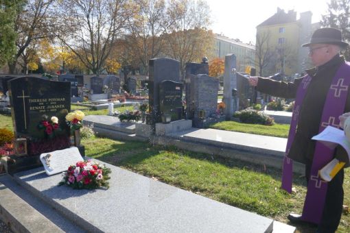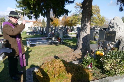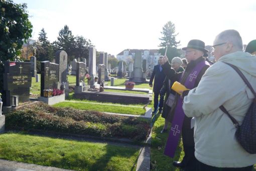 Am Sonntag, dem 9. November 2025 haben wir nach der Messe einen Gräbergang auf dem Meidlinger Friedhof gemacht. Dabei wurden die Gräber der verstorbenen Pfarrgemeindemitglieder besucht. Pfarrmoderator P. Josef hat vor jedem Grab gebetet und es gesegnet. Damit soll die Verbundenheit mit den Verstorbenen zum Ausdruck gebracht werden. Wir danken P. Josef für diese Andacht und Ursula Lechner für die Vorbereitung ganz herzlich. Webredaktion