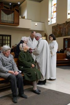 Am 12. Oktober 2025 haben wir den jährlichen Segensgottesdienst für Kranke gefeiert. Unser Pfarrmoderator P. Josef Kampleitner CSsR stand der Messe vor. Verantwortliche der Pfarrcaritas Peter Roschger und Elfi Flörré haben den Gottesdienst gestaltet. Bei diesem Gottesdienst haben die Kranken die Krankensalbung empfangen. Dabei haben sie Erinnerungsbillets bekommen und wurden zum Empfang im Saal eingeladen. Wir danken P. Josef, Peter, Elfi und allen für die Vorbereitung und Gestaltung der Feier ganz herzlich. Webredaktion.