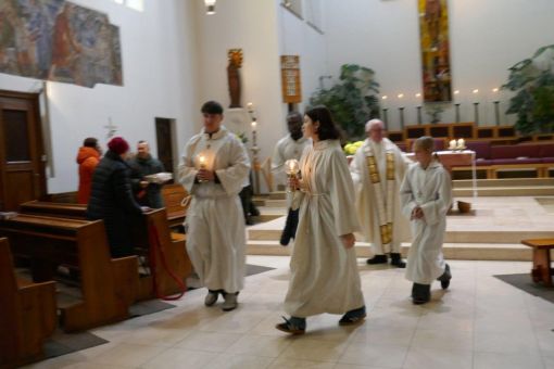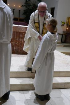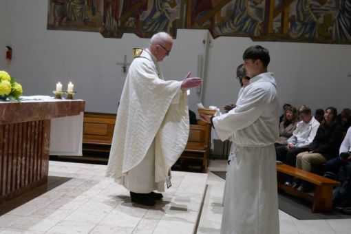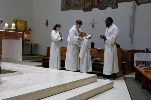 Am Sonntag, dem 9. November 2025 haben wir in der Messe eine Ministrantinaufnahme abgehalten. Daria Seidinger, die im vergangenen Mai ihre Erstkommunion gefeiert hat, wollte Ministrantin werden und wurde zum Ministrantendienst aufgenommen. Die Aufnahmefeier war einfach, aber würdig und stimmig. Sie wurde dabei gesegnet und eingekleidet. Nach der Messe wurden sie und ihre Verwandten zum Kaffee und Kuchen in den Saal eingeladen. Wir danken unserem Pastoralassistenten Ferdinand Radjutuga für die Vorbereitung und Gestaltung der Feier, unseren MinistrantInnen für ihre Mithilfe und P. Josef für die Aufnahme ganz herzlich. Webredaktion